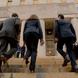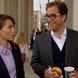 Captain Mathison looks at Bull who smiles at her while holding his donut and coffee.