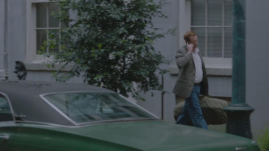 Detective Connors talks on the phone while walking back to his car.