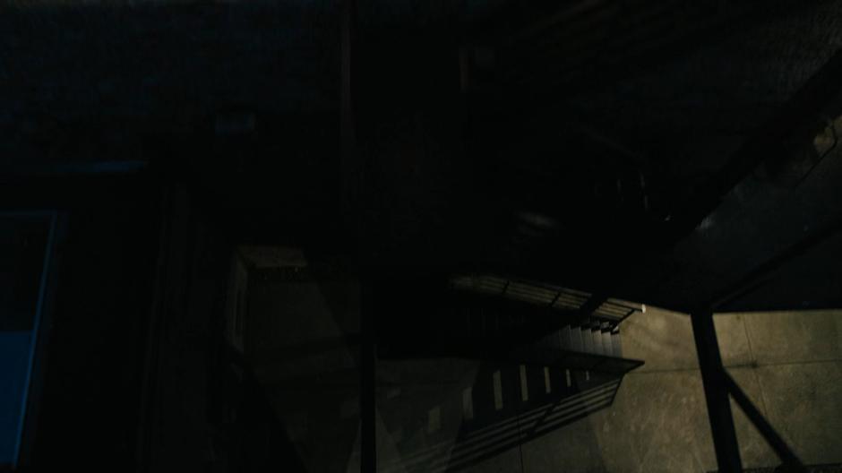 View looking down at the stairs outside the offices.