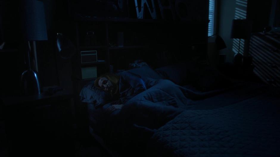 Scully wakes up in a strange bed during her vision.