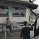 Otis watches his sons talk while opening up their meal.