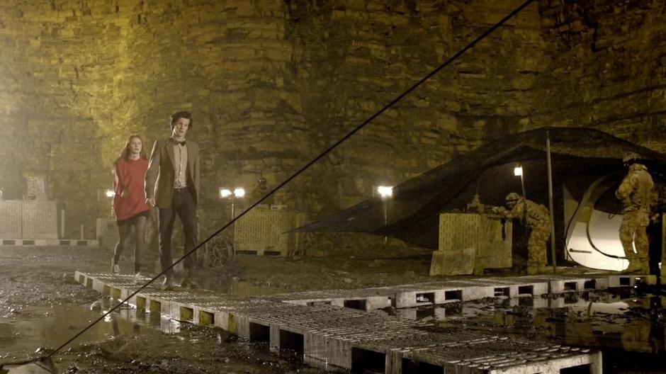 Amy and the Doctor walk to the pod.