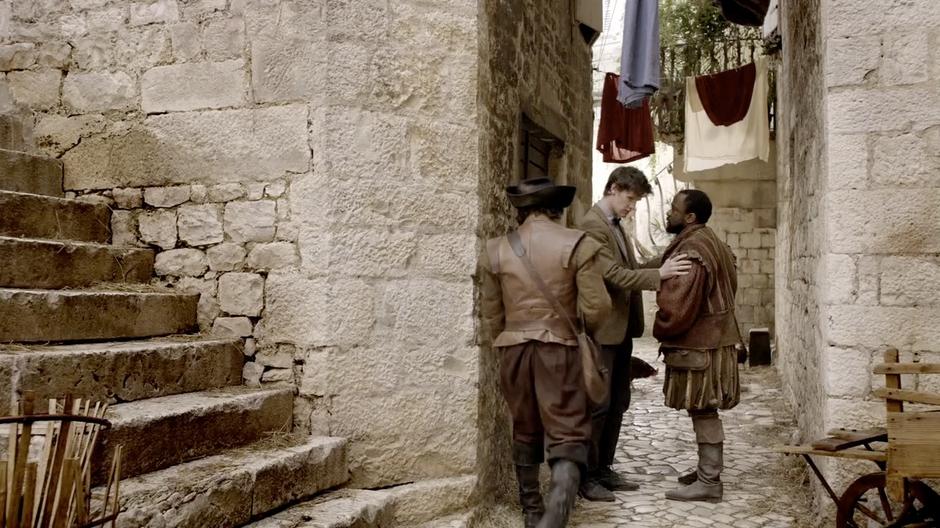 The Doctor talks to Guido about what happened out front of the House of Calvierri.